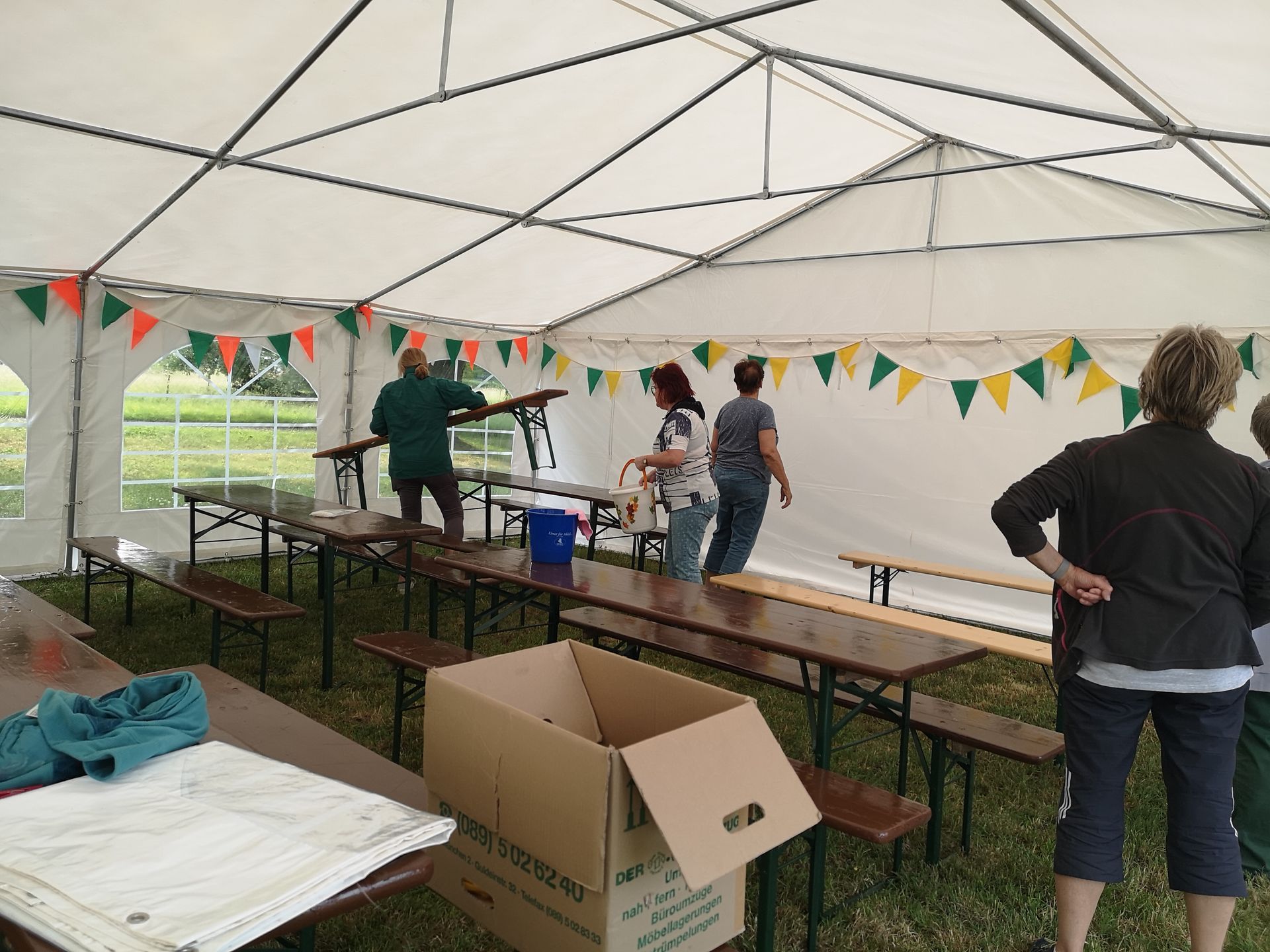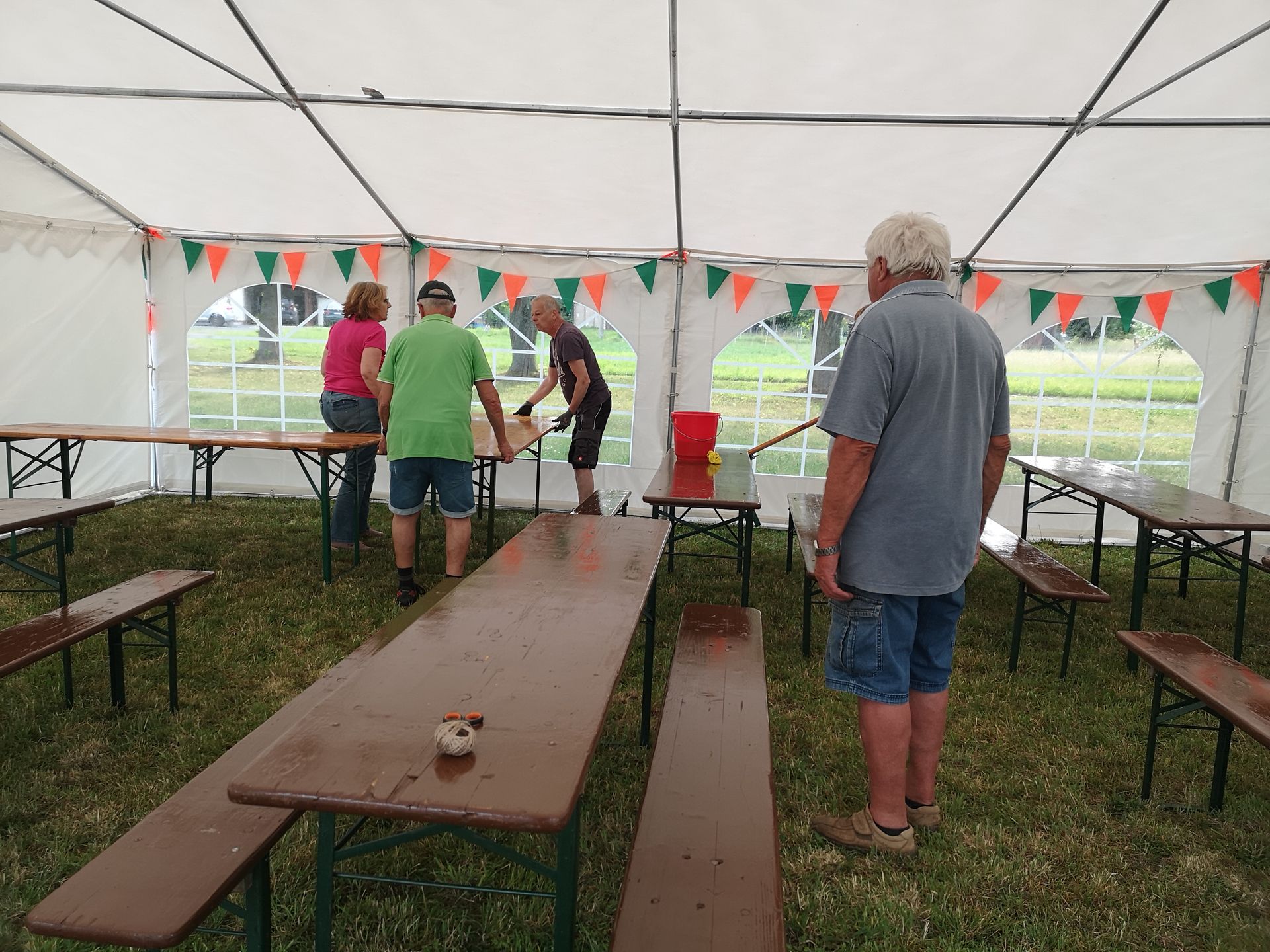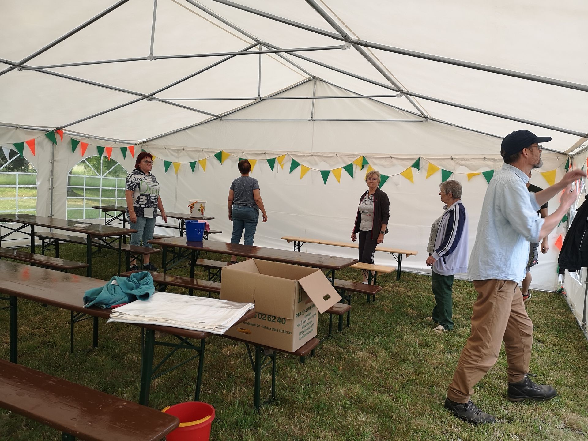 Ob Wimpelketten nähen, Zelte aufstellen, Bühnenpläne zeichnen oder Kuchen backen – gefühlt war das halbe Dorf gleichzeitig auf den Beinen, während die andere Hälfte gerade Schubkarren fuhr. Und alle gemeinsam sorgten dafür, dass unser Jubiläum nicht nur schön, sondern unvergesslich wurde.
