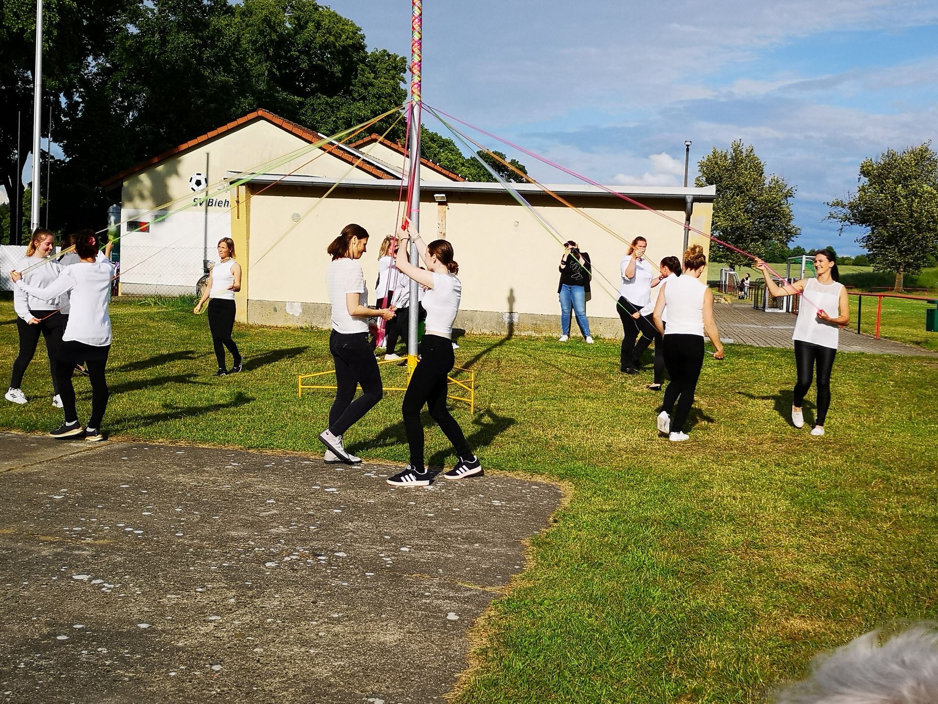 Im Anschluss an die Ausstellung folgte der traditionelle Bändertanz, der festlich und schwungvoll die nächste Etappe des Festes einleitete. Danach wurde feierlich der Staffelstab von Zschornau/Schiedel an uns übergeben – Volkmar Waurich nahm ihn mit sichtlichem Stolz entgegen.