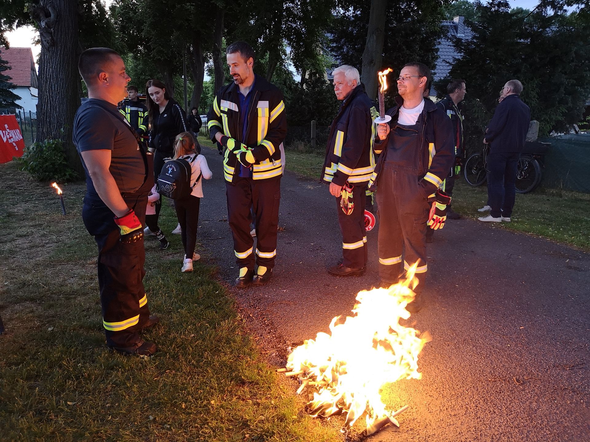 Im Festzelt hielt Oberbürgermeister Roland Dantz anschließend eine mitreißende Rede, die alle Anwesenden begeisterte. Im Anschluss führte der Spielmannszug aus Schwarzkollm den stimmungsvollen Lampionumzug durchs Dorf an. Nach diesem feierlichen Übergang sorgte DJ Dauerrot mit seiner Musik für ausgelassene Stimmung und eine volle Tanzfläche.